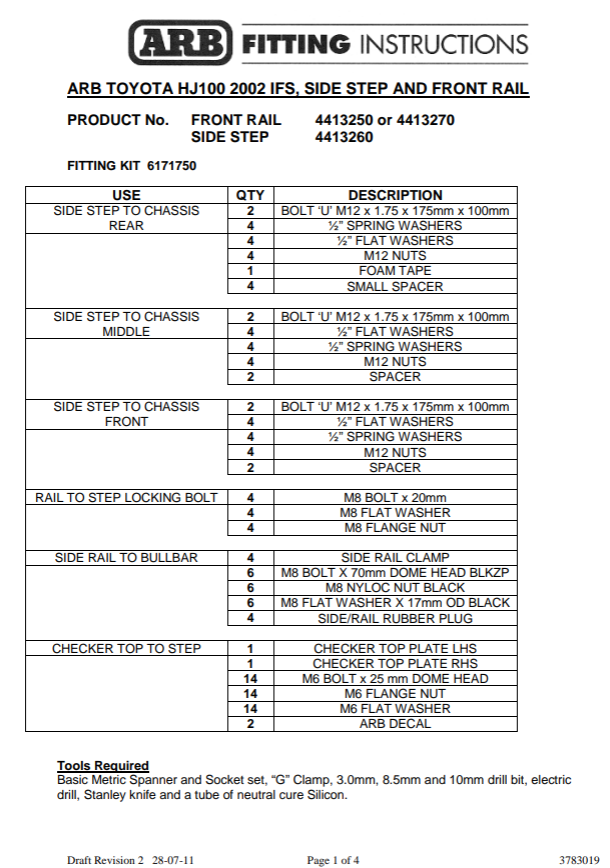 100 Series Side Rails / Side Steps 4413260, 4413250, 4413270