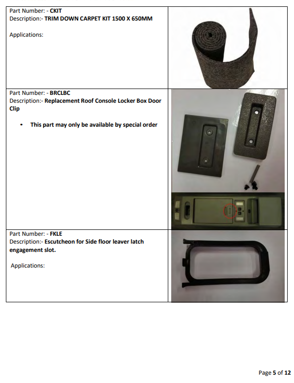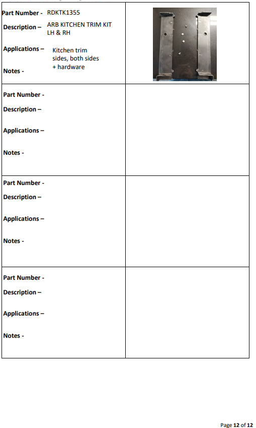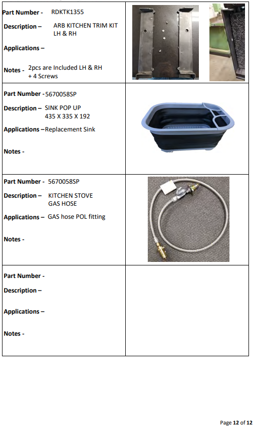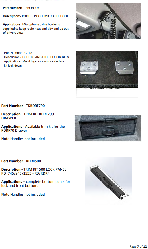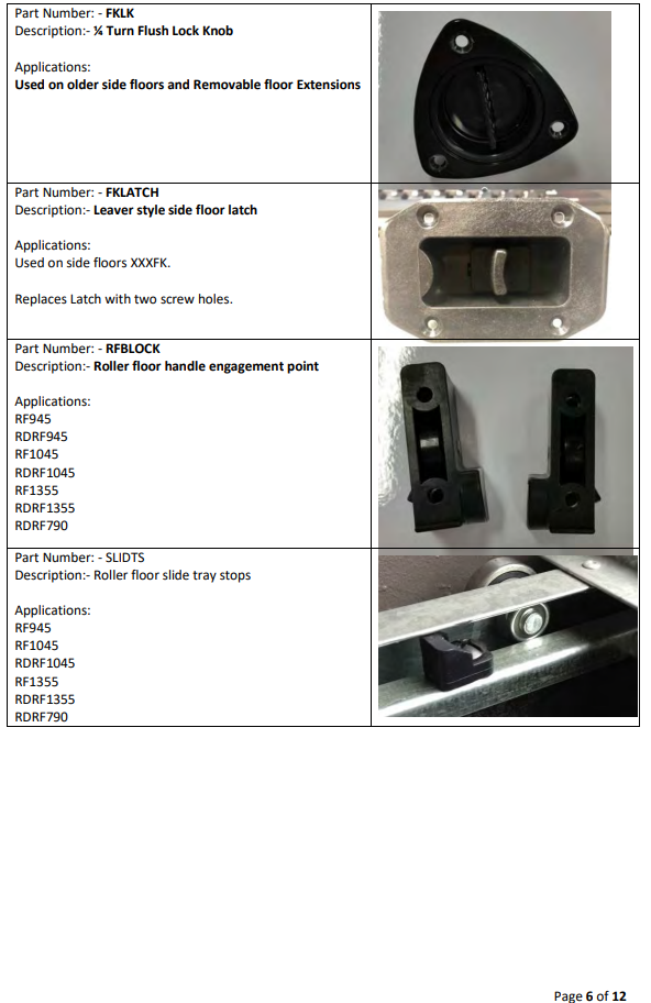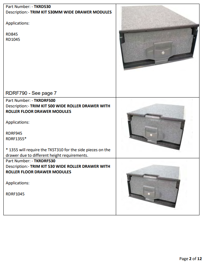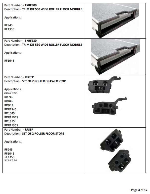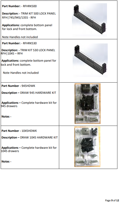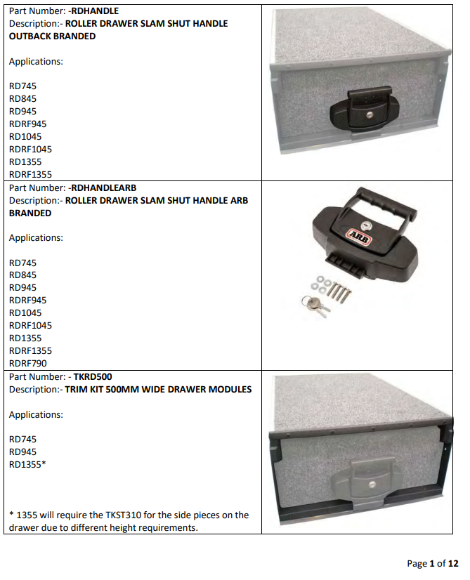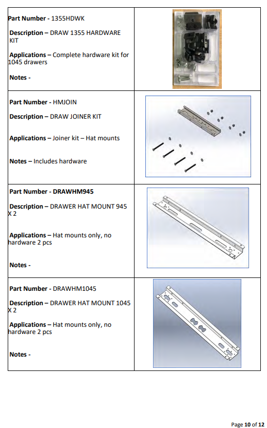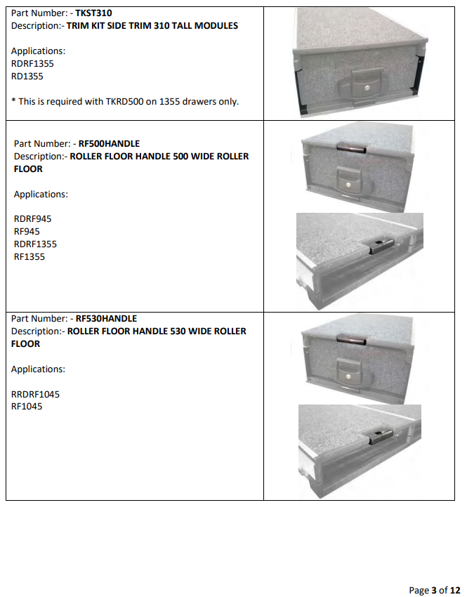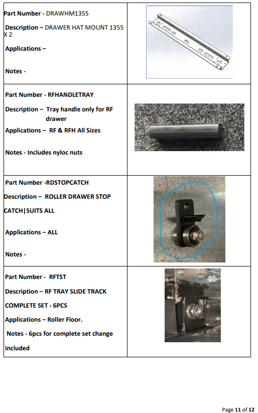 Drawer System Spare Parts List
